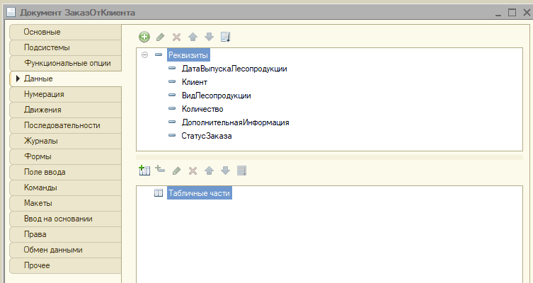- Создать справочник Виды лесопродукции со стандартными реквизитами, поместить его во все три подсистемы.