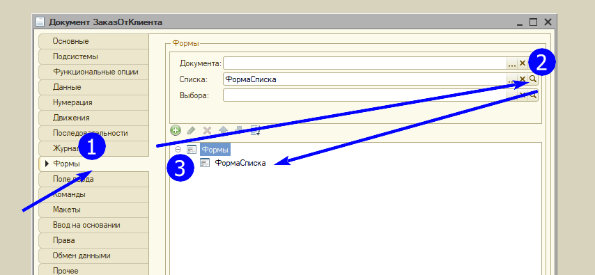 Рис. 1.2.Реализовать выделение цветом в списке документов Заказ на лесопродукцию. Для этого необходимо создать форму списка документа Заказ клиента — рис. 1.3.