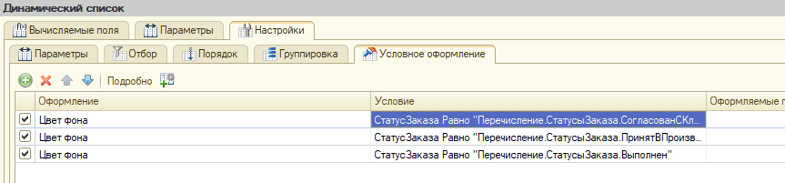 Аналогичное условное оформление делаем для статусов заказа Принят в производство и Черновик — рис. 1.7.