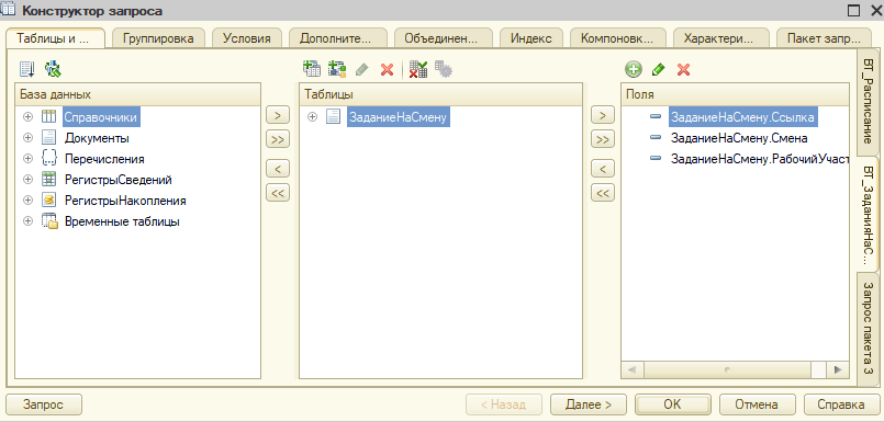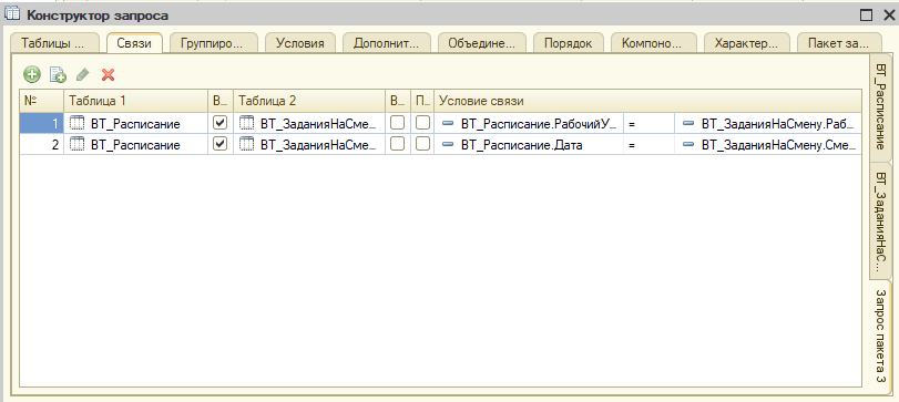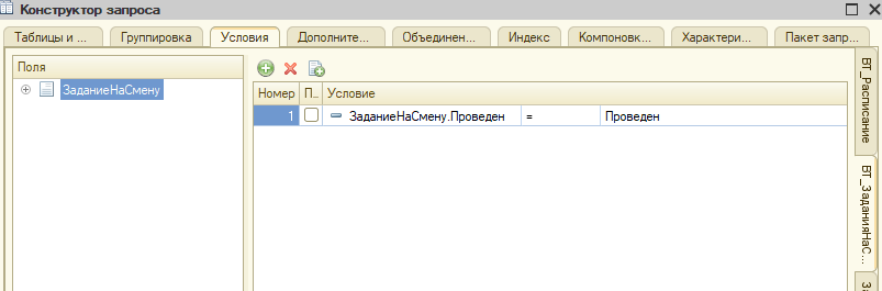 Рис. 1.43.На закладке Условия второго пакета запроса зададим условие выбора данных, рис. 1.44.