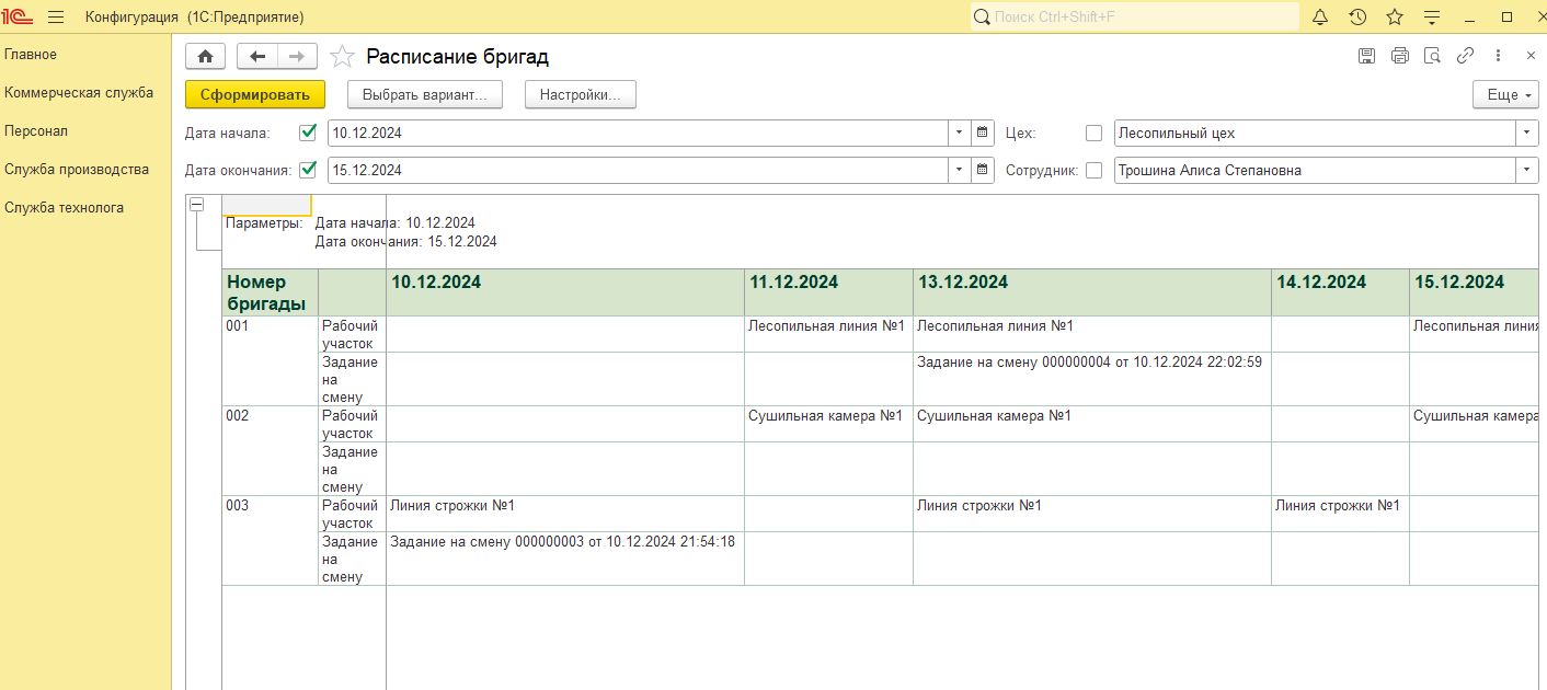 Сразу обращаем внимание на то, что работа бригад не связана с заданиями на смену. Задание на смену будет выдано той бригаде, которая работает на участке согласно расписанию.