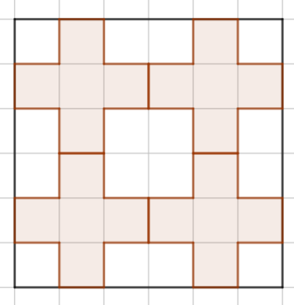 Докажем, что больше четырех таких фигур расположить в квадрате не получится. Для этого отметим в квадрате \(6 \times 6\) внутренний квадрат \(4 \times 4\). Центральной клеткой рассматриваемой фигуры «крест» будем называть клетку, соседнюю с другими. Тогда легко видеть, что если крест расположен в большом квадрате, то центр этого креста находится во внутреннем квадрате \(4 \times 4\). Больше того, легко видеть, что если центры двух крестов попали в один и тот же квадрат \(2 \times 2\), то такие два креста обязательно пересекаются. Значит, такого не должно происходить в правильной расстановке. Но тогда во внутреннем квадрате \(4 \times 4\) можно расположить не более четырех центральных клеток от крестов, так как этот квадрат можно разбить на 4 квадрата \(2 \times 2\), в каждом — не более одного центра креста.