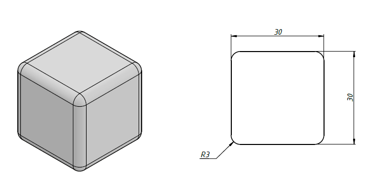 Каждое ребро кубика скруглите радиусом 3 мм.