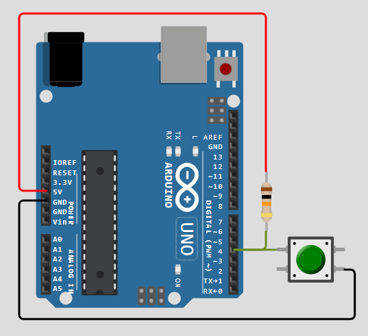 С помощью Arduino Uno, резистора на 10 кОм и кнопки собрана следующая схема (рис. 2.1).