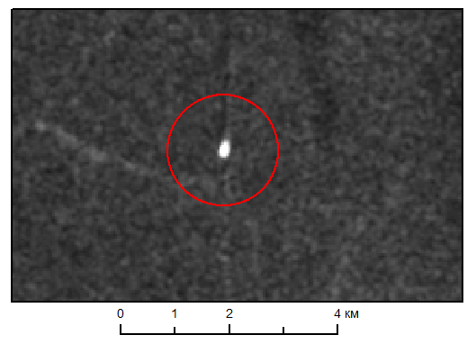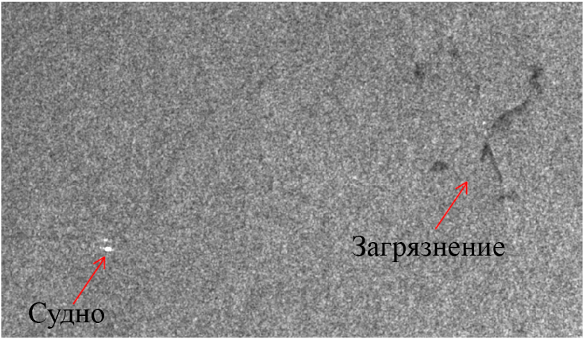 Визуально суда однозначно дешифрируются на радиолокационных снимках. Металлические конструкции усиливают отраженные радиоволны, поэтому они являются наиболее яркими объектами на снимке (рис. 1.1).