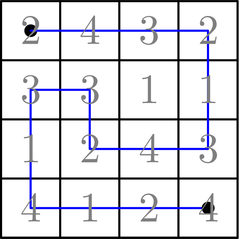 \[\begin{array}{|c|c|c|c|} \hline 2 & 4 & 3 & 2\\ \hline 3 & 3 & 1 & 1\\ \hline 1 & 2 & 4 & 3\\ \hline 4 & 1 & 2 & 4\\ \hline \end{array}\]
