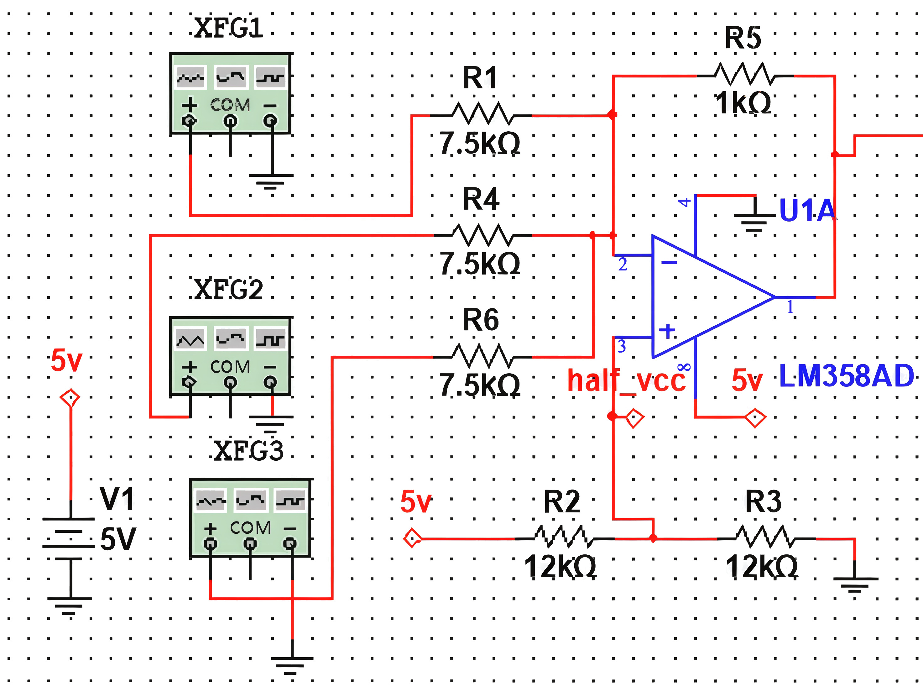 | Резисторы: 12 кОм | Реализация схемы суммирования |