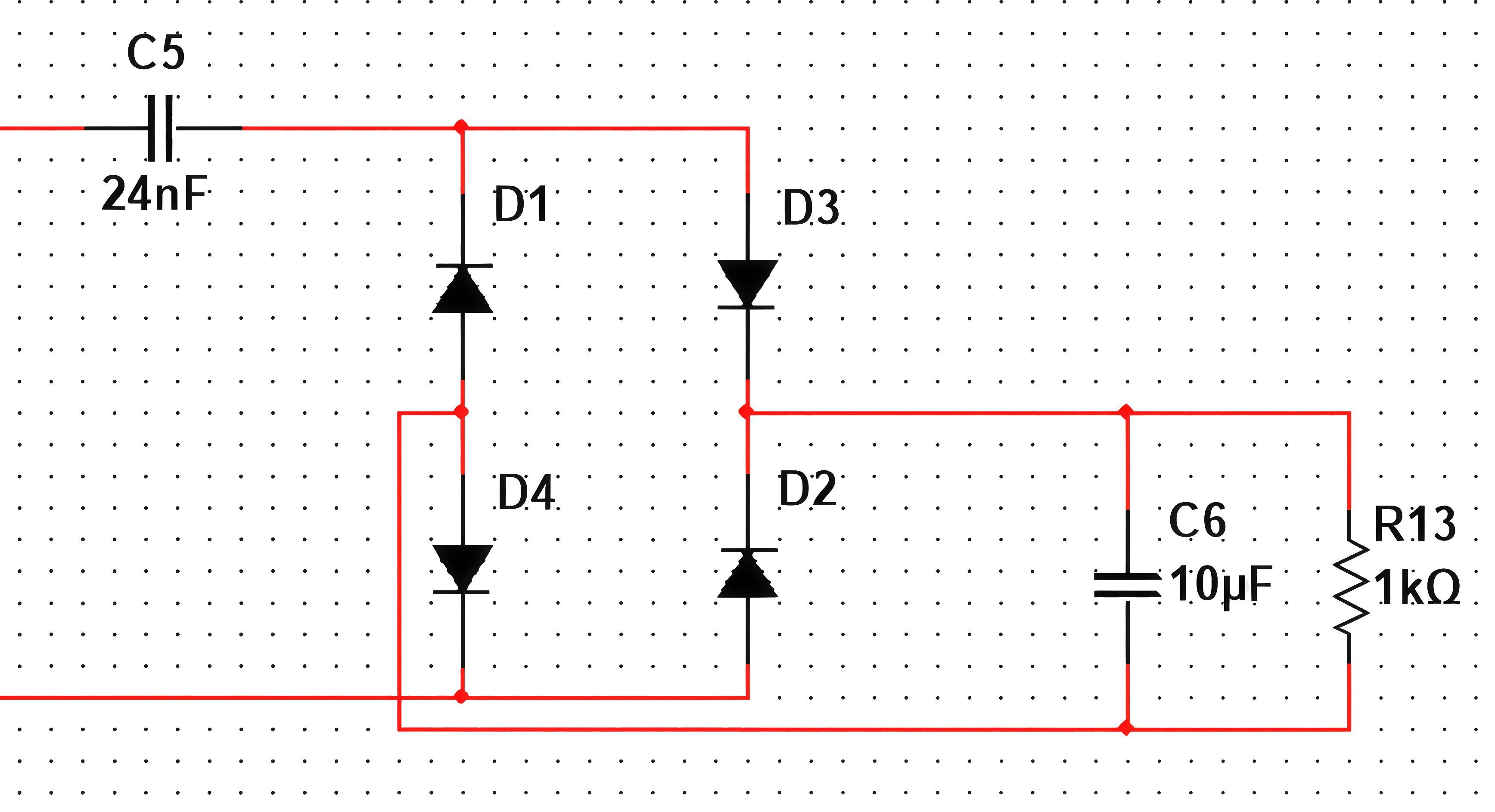 | Конденсатор: 24 нФ (неполярный) | Реализация выпрямителя |
