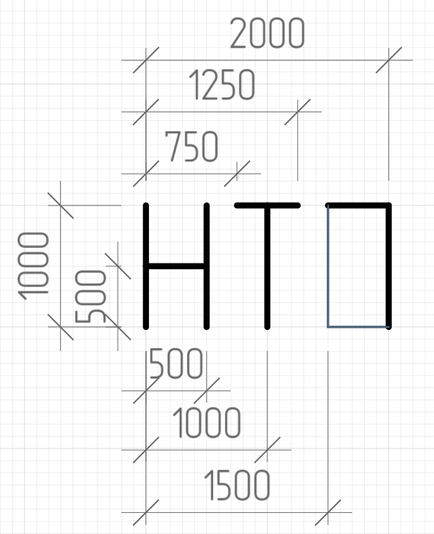 - Вторая буква: \((1000, 0; 1000, 1000)\), \((750, 1000; 1250, 1000)\).