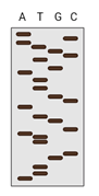 Идя снизу вверх по рисунку, определить по бэндам последовательность ДНК.