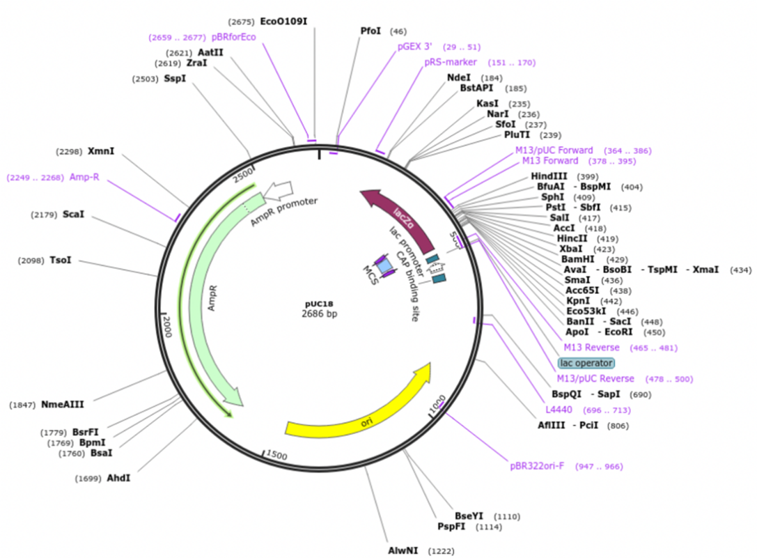 - Карта плазмиды pUC18 — https://www.addgene.org/50004/ (pdf-версия https://disk.yandex.ru/i/zWWHhcmPhHRs-A).