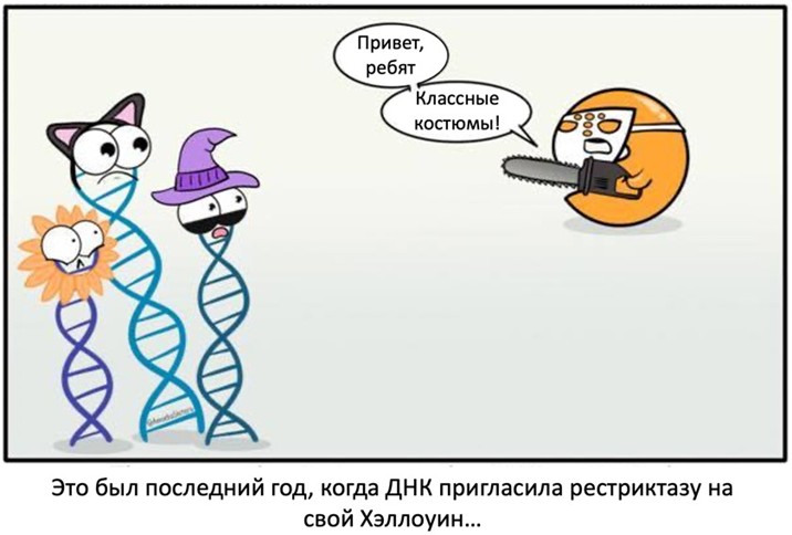 Сайт рестрикции из 6 нуклеотидов RAATTY появляется в одном случае из: \[2\cdot 4\cdot 4\cdot 4\cdot 4\cdot 2 = 1024.\] Вероятность встречи в плазмиде длиной 2024 = \(2024\,/\,1024 = 2\).