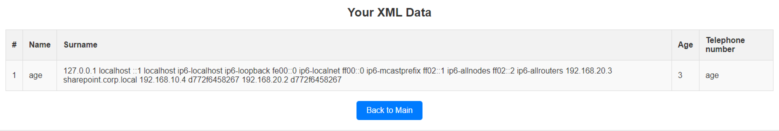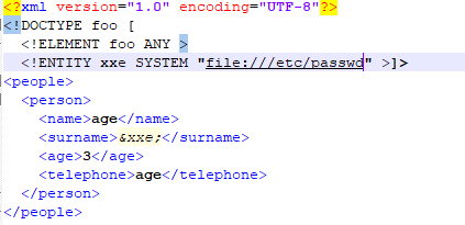 <surname>&xxe;</surname>