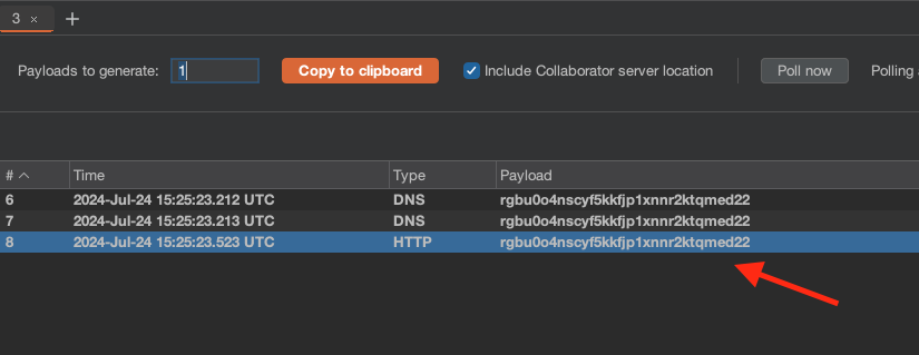GET-параметреaddress collaboratorдомен, на который должен отправитьсяDNS-запрос из-за командыnslookup.Полезная нагрузка в сыром виде: