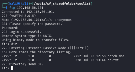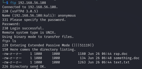 Используя учетную запись anonymous:anonymous, просмотрим доступные на ftp-сервере файлы.
