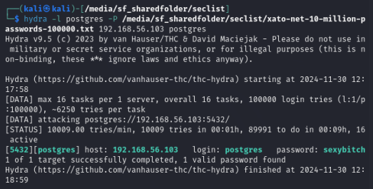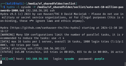 С помощью утилиты hydra и словаря xató-net-100million-passwords-1000.txt подбираем пароль для данной учетной записи.