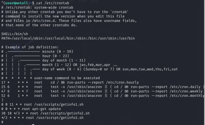 Используя предоставленные данные УЗ, получаем возможность удаленного выполнения кода через сервис ssh. Проводим энумерацию планировщика задач (crontab): рис. 1.17.
