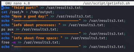 Редактируем скрипт getinfo3.sh, добавляя вывод содержимого всех файлов в /root в файл /tmp/output: рис. 1.19.