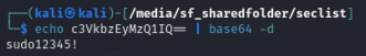 Загружаем файл в Wireshark и, т. к. есть исходные данные в виде /etc/sudoers, то ставим фильтр frame contains<</etc/sudoers". Появляются два результата, кликаем на любой ПКМ — follow — TCP Stream и видим команды, которые отправлялись на целевую машину. Наблюдаем команду