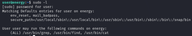 (ALL) /usr/bin/grep, /usr/bin/find, /usr/bin/cat