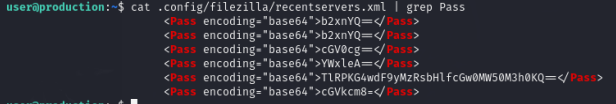 И далее видим пароли в открытом виде от УЗ filezilla: