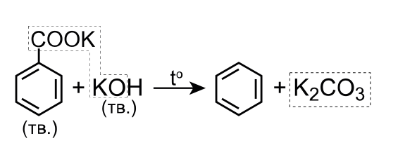 или \(\ce{C_6H_5COONa + NaOH -> C_6H_6 + Na_2CO_3}\).