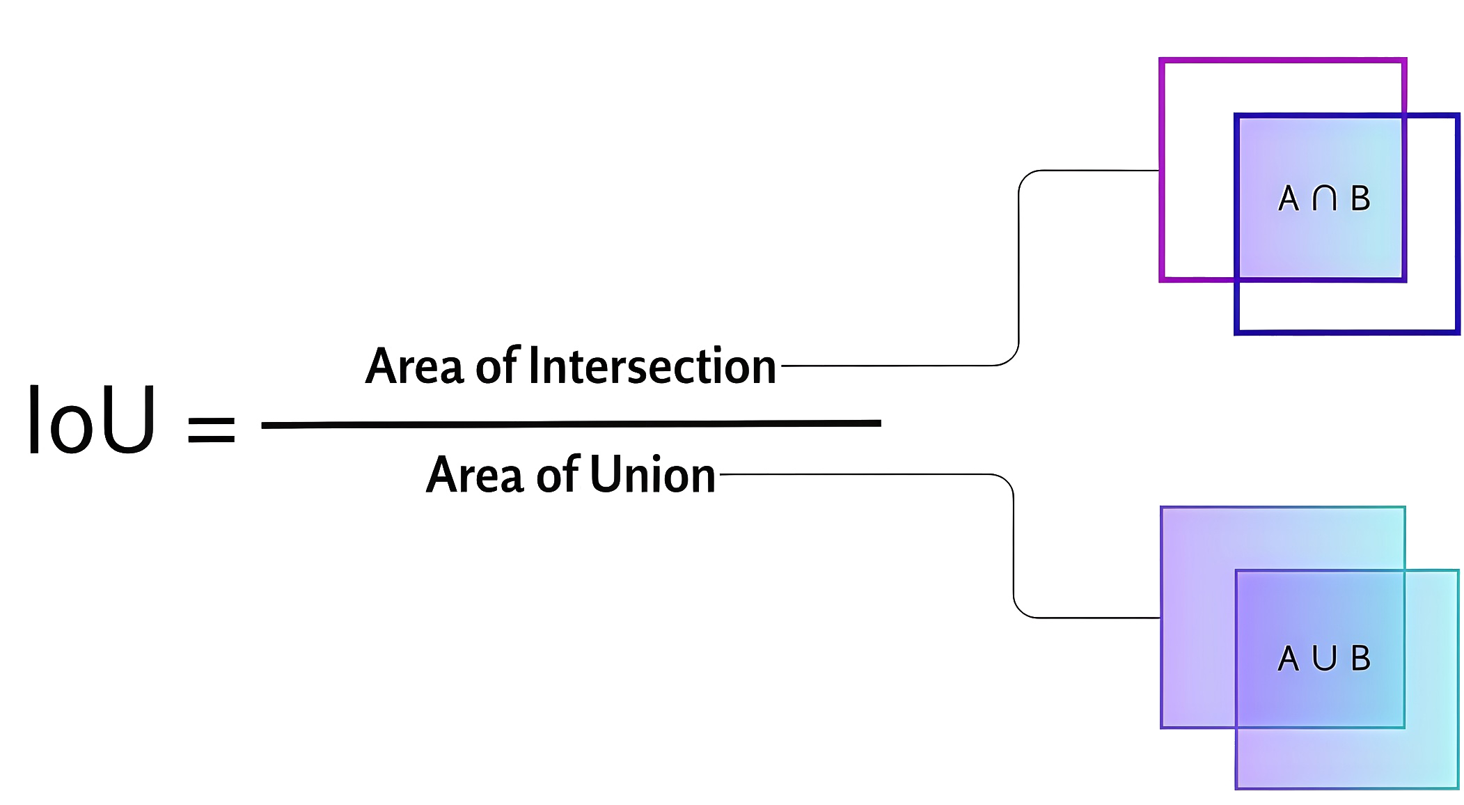 Для оценки качества работы модели многоклассовой детекции используется метрика mAP 0,5–0,95 — подсчет средней точности (AP — Average Precision) для каждого класса при различных значениях порога IoU (Intersection over Union) от 0,5 до 0,95 с шагом 0,05 (минимальное IoU для рассмотрения положительного совпадения) с дальнейшим усреднением по классам.