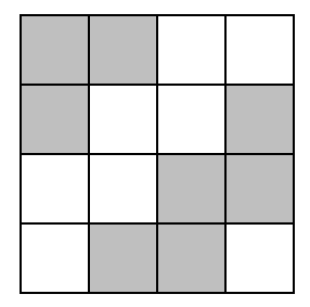 Пусть \(N\geqslant 5\). Выделим квадрат \(5\times 5\). Если его столбец содержит хотя бы три черные клетки, то назовем его черным, в противном случае — белым. Из пяти столбцов хотя бы три — одного цвета. Рассмотрим эти три столбца. Без ограничения общности будем считать их черными. Обозначим строки \(a, b, c, d, e\) в каком-либо порядке. Пусть в первом столбце черные клетки стоят в строках \(a, b, c\). Тогда во втором и третьем столбцах максимум по одной черной клетке в этих строках. Значит, во втором и третьем столбцах черные клетки точно стоят в строках \(d\) и \(e\), и найдена пара строк \(d, e\) и пара столбцов \(2, 3\), в пересечении которых все клетки черные. Противоречие.