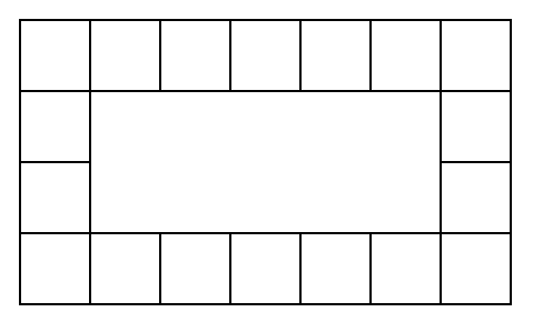 Заданы целые числа \(m > n \geqslant 3\). Рамкой прямоугольника \(m \times n\) называется фигура, состоящая из \(2m +2n-4\) граничных квадратов этого прямоугольника. На рис. 1.1 показана рамка размером \(4\times 7\) в качестве примера.