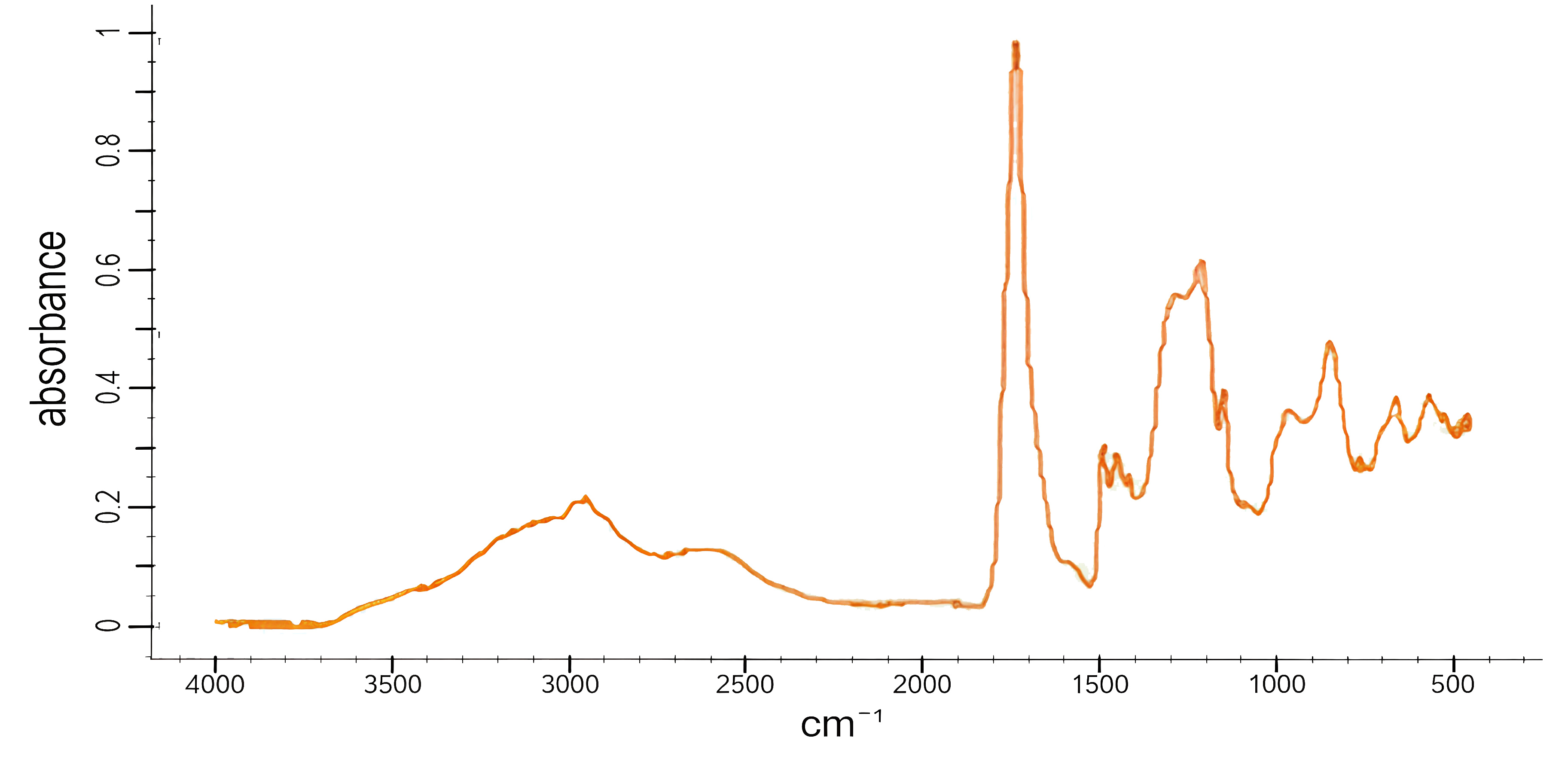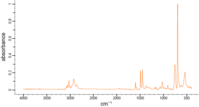 РешениеХарактерными полосами поглощения в данном случае являются интенсивная широкая полоса 2800–3600 см\(^{-1}\) (О–Н группа), 2900 см\(^{-1}\) (С–Н группа), 1650–1750 см\(^{-1}\) (С=О группа), 700 см\(^{-1}\) (фенильная группа). Таким образом, для первого полимера ожидается полоса фенильной группы, для второго ОН и СО полосы, для третьего — СО, для четвертого — СН.