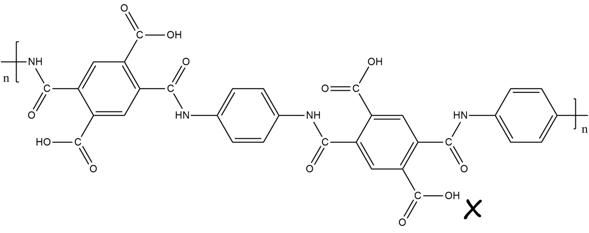 Рассмотрите схему синтеза полиамида X (рис. 1.2), который отличается хорошей термостойкостью: температура его размягчения выше 800 °C.