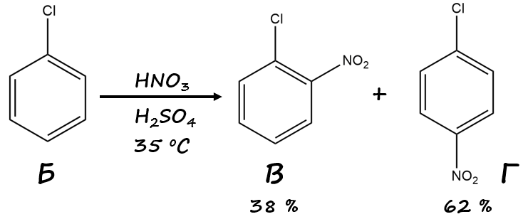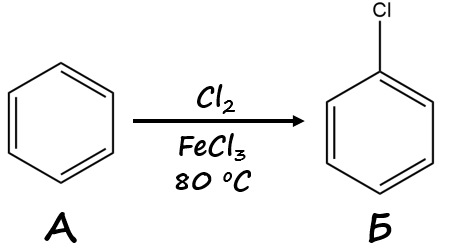 Хлорирование бензола с использованием хлорида железа (III) (как катализатора хлорирования по Фриделю – Крафтсу) приводит к веществу Б — хлорбензолу (рис. 1.5),