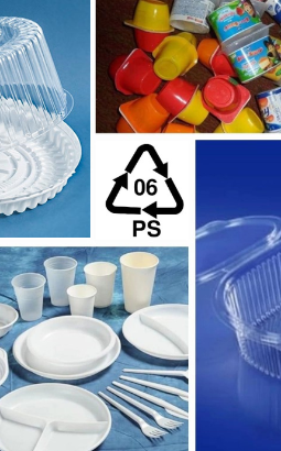 Изделия из полистирола широко используются в самых различных областях: от теплоизоляционных плит и детских игрушек до одноразовых шприцев, катетеров и пищевой упаковки. Из разных марок полистирола производят стаканчики для йогуртов, одноразовые контейнеры и посуду, упаковку для яиц и подложки. Важно проверять допустимые условия использования, поскольку при действии высокой температуры (например, при контакте с горячим напитком или разогреве в микроволновой печи) может происходить частичная деполимеризация с выделением токсичного стирола.