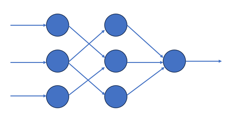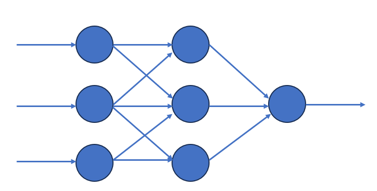 \[\begin{aligned} H_1 &= H_3 = 2 \cdot 0,5 \cdot \frac{1}{1 + e^{-0,5}} \approx 0,62;\\ H_2 &= 3 \cdot 0,5 \cdot \frac{1}{1 + e^{-0,5}} \approx 0,93;\\ O &= 2 \cdot 0,5 \cdot \frac{1}{1 + e^{-0,62}} + 0,5 \cdot \frac{1}{1 + e^{-0,93}} \approx 1,01. \end{aligned}\] Для простой пороговой функции: \[\begin{aligned} H_1 &= H_3 = 2 \cdot 0,5 \cdot 0,5 = 0,5;\\ H_2 &= 3 \cdot 0,5 \cdot 0,5 = 0,75;\\ O &= 2 \cdot 0,5 \cdot 0,5 + 0,75 = 1,25. \end{aligned}\]