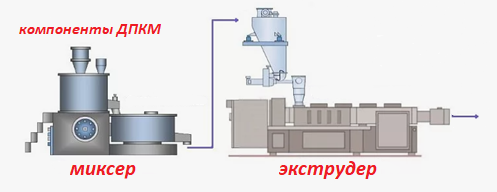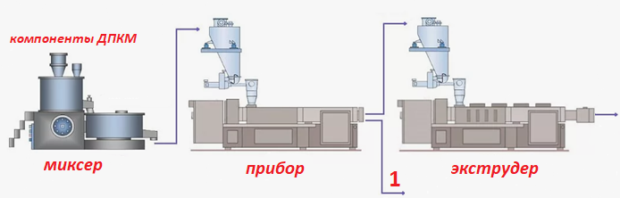 Оборудование: смеситель (роторно-винтовой, планетарный миксер) или зона смешивания экструдера.