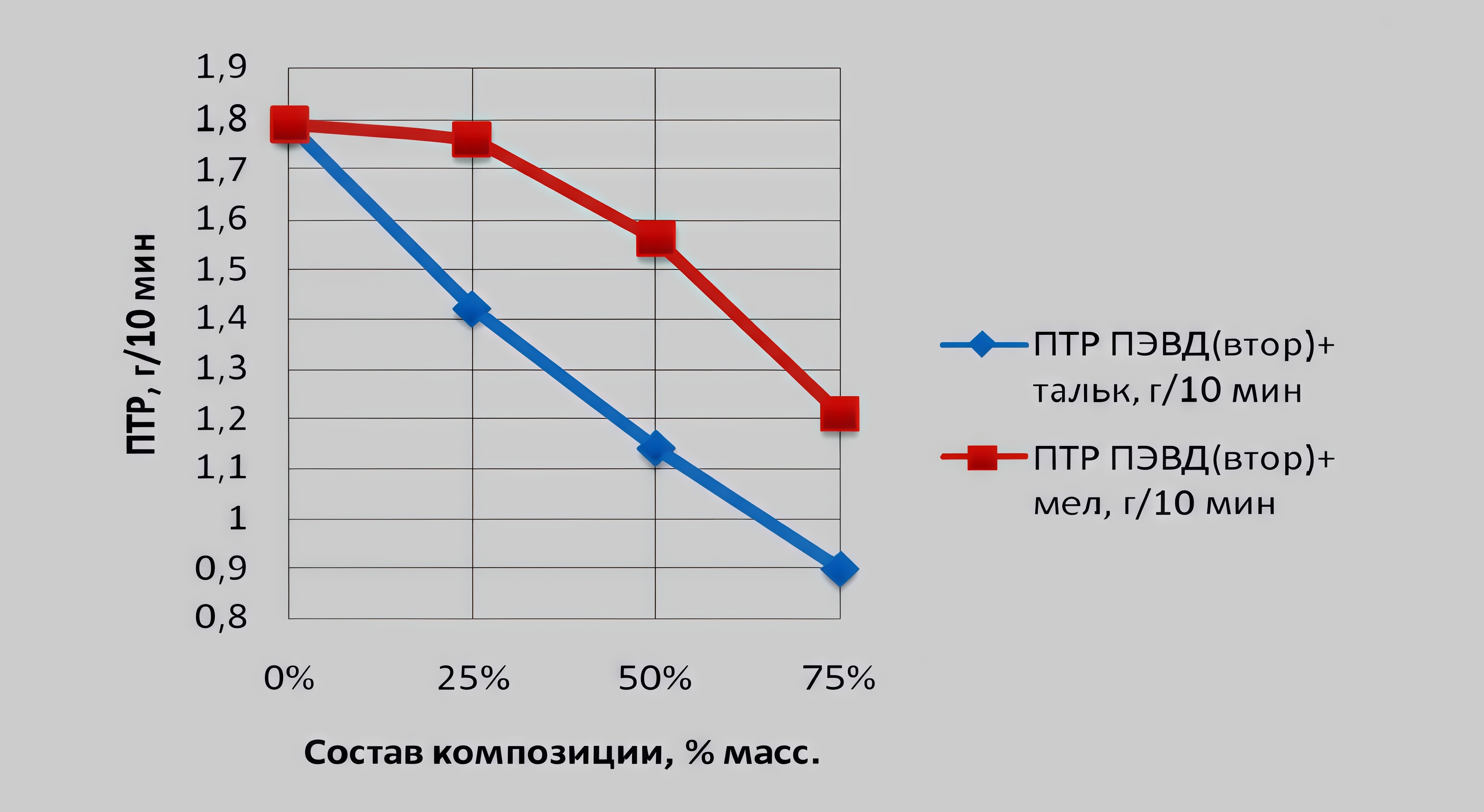 Тальк проявляет самый слабый эффект повышения температуры размягчения. Но при концентрации выше 0,8% температура увеличивается из-за увеличения вязкости полимерной матрицы.