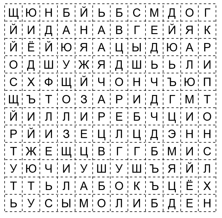 Слова, зашифрованные в филворде: