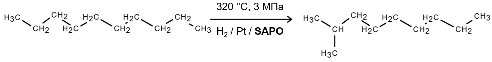 Уфимские ученые использовали для этой цели платину на силикоалюмофосфатах SAPO при температуре 340 °C и давлении 3 МПа. Благодаря полученным результатам, в Институте нефтехимии и катализа Уфимского федерального исследовательского центра РАН (входит в Евразийский научно-образовательный центр) открыли молодежную лабораторию молекулярно-ситовых бифункциональных каталитических систем для получения низкозастывающих дизельных топлив.