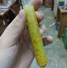 При полном растворении алюминия остается оранжево-коричневая взвесь и темно-зеленый раствор (В). Спустя два дня, безвылазно проведенных в лаборатории, ЮХ закончил исследования.