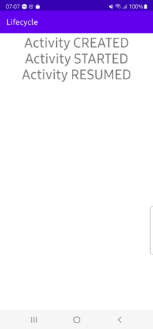 TextView(@id/protocol). - Каждое состояние жизненного цикла выводится в отдельной строке.