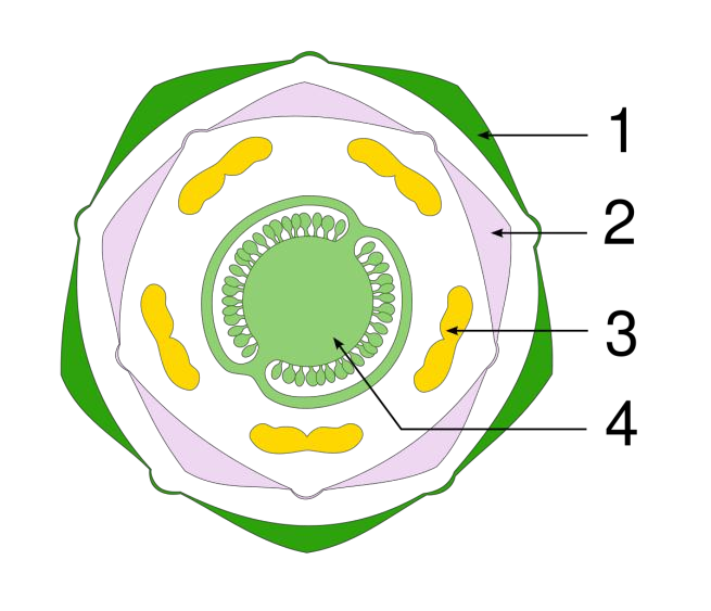 | 2. | \(\bullet\) диаграмма цветка представляет собой схематическую проекцию цветка на плоскость; | 1 балл |