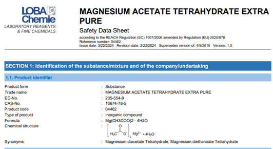 Ацетат магния имеет богатое «портфолио» в различных областях промышленности: Mg-содержащая добавка в комбикормах, катализатор тонкого органического синтеза, фиксатор при окрашивании текстиля и ситца, удобрение, компонент антигололедных смесей и т. д.