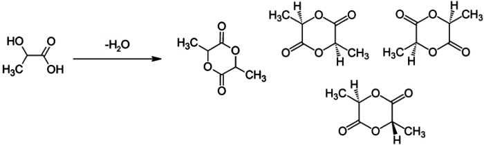 W — лактид — существуют в виде двух L- и D-стереоизомеров, являющихся зеркальным отображением друг друга. Варьируя относительное содержание этих форм в полилактиде, можно задавать свойства получаемого полимера, а также получать различные классы полилактидных материалов. |