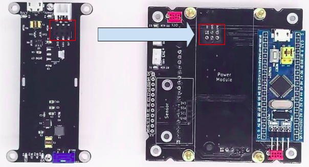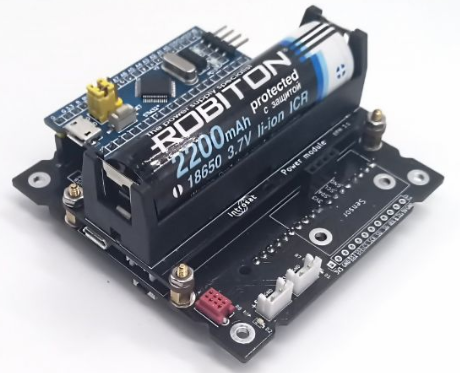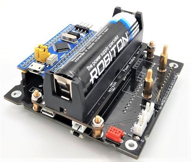 | 4 | Установите аккумулятор в модуль питания, при необходимости закрепите его пластиковой стяжкой через ушки в плате. Модуль питания установите на материнскую плату так, чтобы шестиконтактные разъемы сопрягались друг с другом. Закрепите гайками модуль питания. |