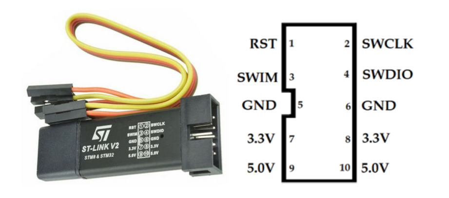 В таблице 1.3 условно показан способ коммутации программатора ST-Link V2 и платы с микроконтроллером Blue Pill.