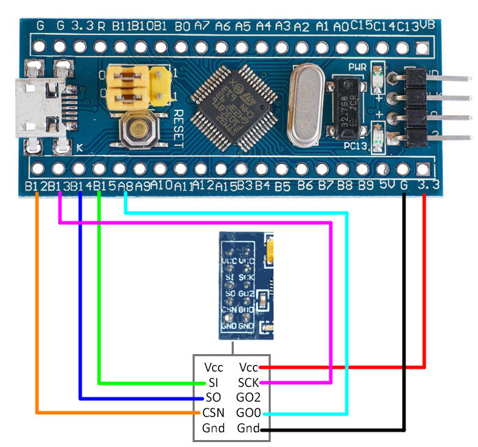 ---> SCK ---> DIO ---> GND ---> 3.3V |